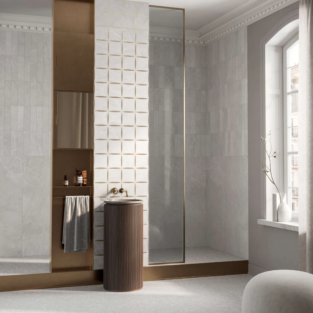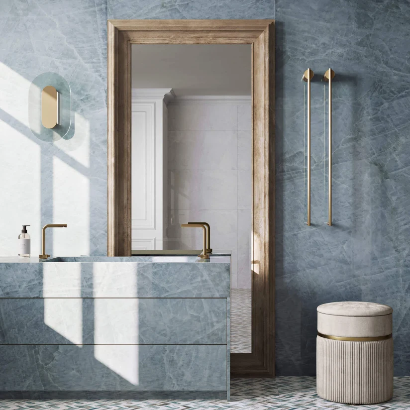 Soft, satin-matte finishes in both Avorio and Acqua provide subtle luxury and a smooth touch, perfect for creating serene, modern interiors.